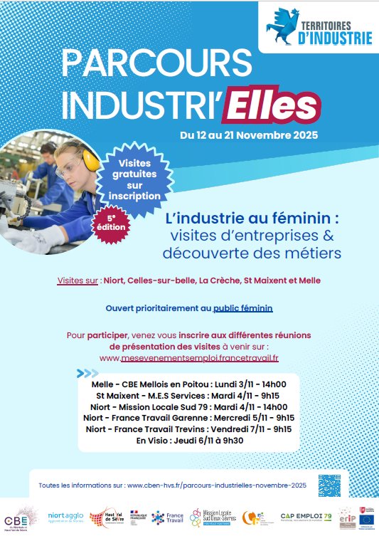 Découverte des métiers de l’Industrie qui recrutent sur le Sud 79 en visitant des entreprises industrielles locales . Le Parcours Industri’Elles vise à organiser des visites d’entreprises, pour un public féminin en recherche d’emploi ou reconversion. Les entreprises de l’industrie ont ouvert leurs portes du 12/11 au 21/11/2025 autour de Niort, La Crèche, St Maixent l’Ecole, Celles sur Belle, Melle. Ces visites…